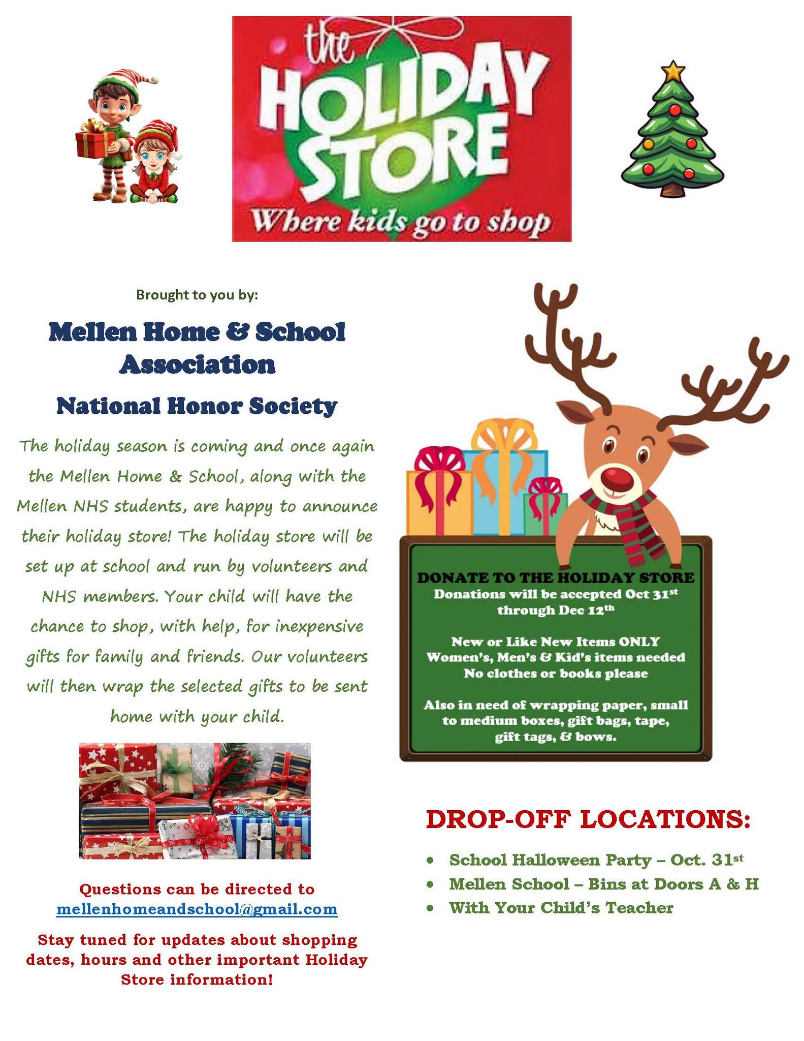 Donations are being accepted for the Mellen school’s “The Holiday Store” until December 12. Check out this poster for details!