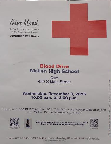 Please call 1-800-RED-CROSS (800-733-2767) or visit RedCrossBlood.org and enter Mellen HS to schedule an appointment.