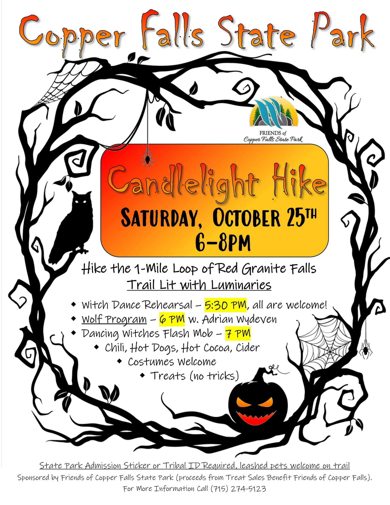 Starting at the Red Granite Falls trailhead walk along a 1 mile Luminary lit trail, enjoy a bonfire and special entertainment. Family Fun for everyone!